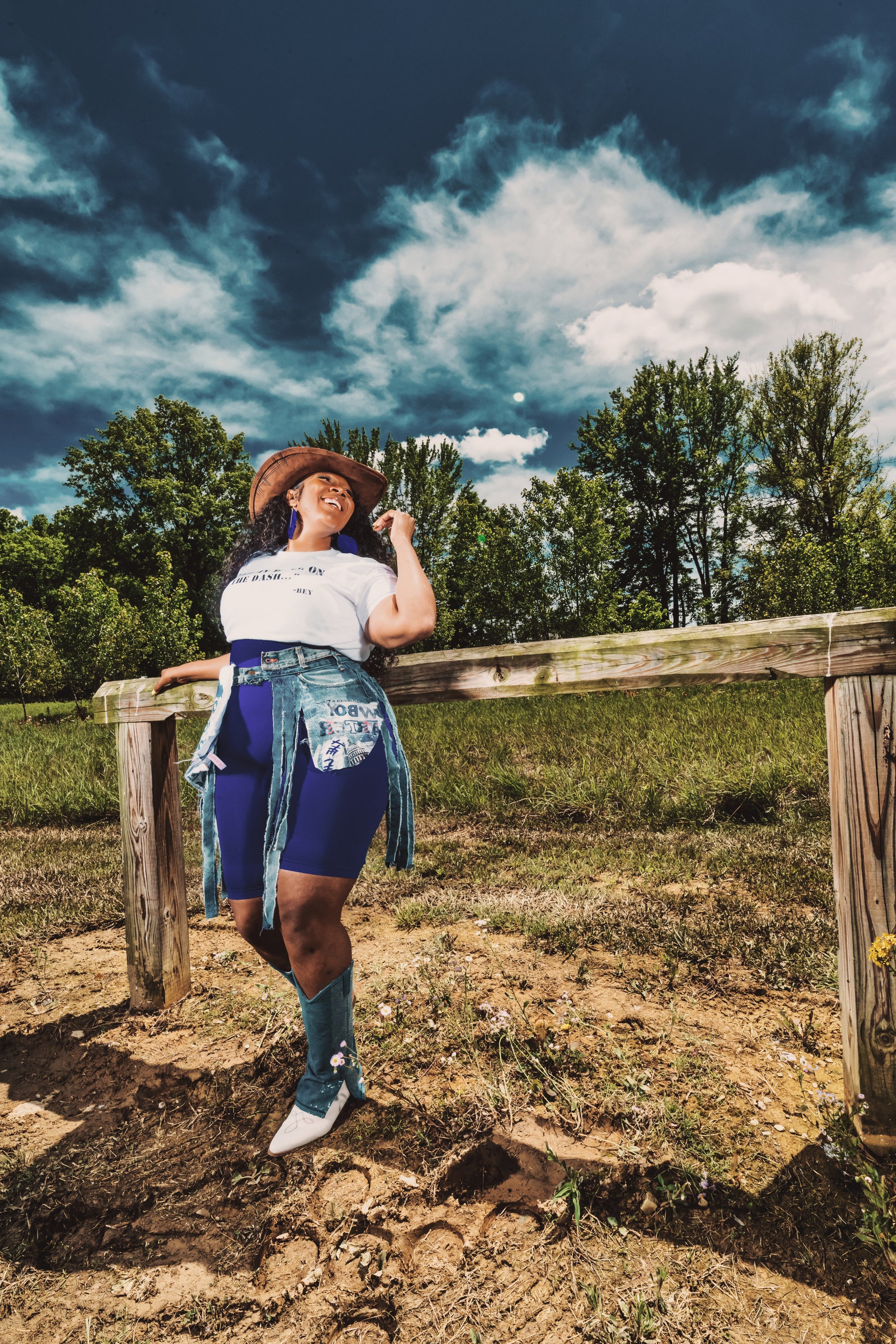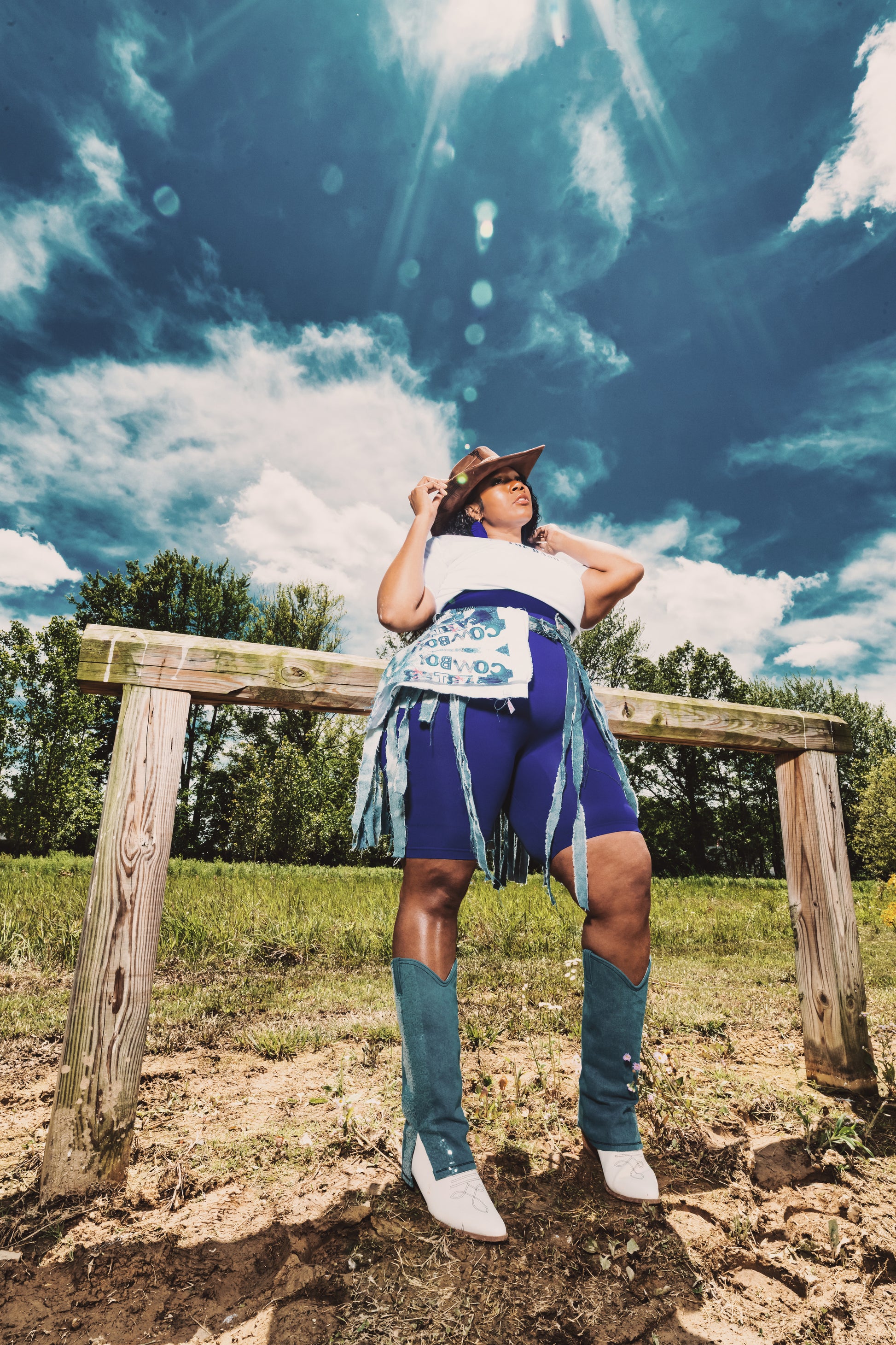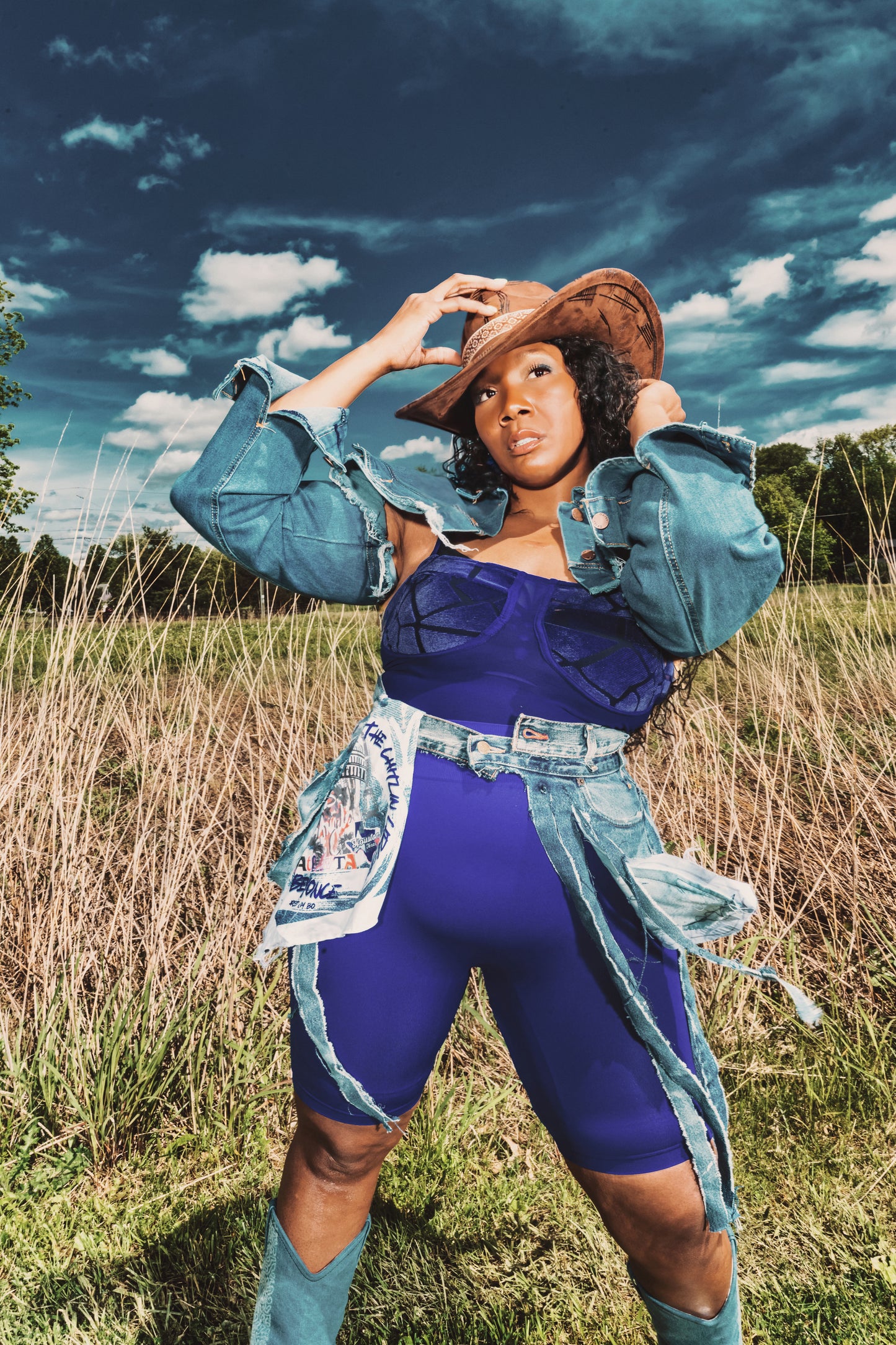 Crafted from recycled premium denim and finished with luxe hand-cut fringe, this hybrid piece moves with you—just like the rhythm of a southern beat. The standout pocket detail features a discreet Cowboy Carter-inspired motif, adding a nod to modern cowgirl royalty.