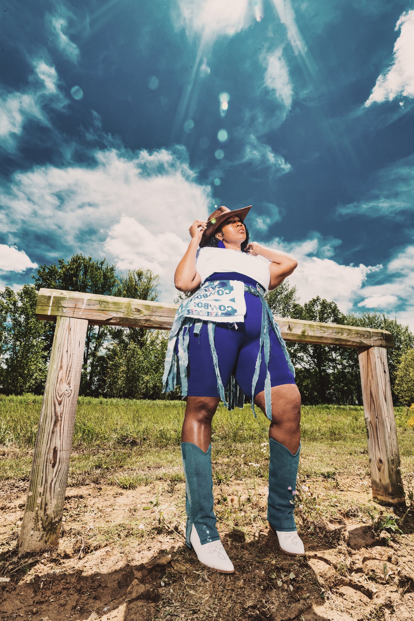 Saddle up in couture casual with the Denim Fringe Belt-Skirt—a rebellious twist on Western glam and a salute to the bold spirit of Cowboy Carter. Whether you’re cinching it over jeans as a sculptural belt or styling it solo as a daring micro-fringe skirt with the right underlayers, this piece is your passport to unapologetic, denim-drenched drama.