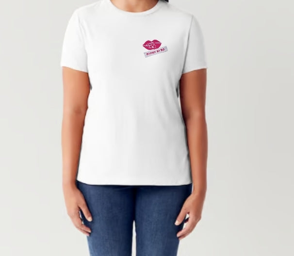 Color Options: Classic Black with red, tan on a white tee, and pink
